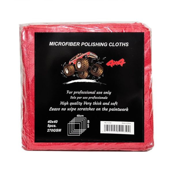 بسته 5 عددی دستمال میکروفایبر قرمز مدل 4×4 Microfiber Polishing Cloths Red یک پارچه استاندارد حرفه ای برای بالاترین نیازهای ضروری به خصوص سطوح حساس است. پس از پولیش نهایی هیچ گونه اثری بر جای نمی گذارد یا خراش های ناشی از آن را پاک می کند. پارچه ها گوشه های آن را گرد کرده و در لبه ها چرخانده اند تا نرمی را به حداکثر برسانند. لبه های هر پارچه ابریشم است تا حکاکی روی سطوح رنگ تازه جلا داده شده را کاهش دهد. و هیچ برچسبی روی حوله ها وجود ندارد.
