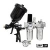 ست پیستوله سه تنطیم رنگ حرفه ای اوریتا نوا مدل Auarita Nova Spray Gun Kit HVLP شامل سه محصول جداگانه و مرتبط به یک دیگر است که حاوی یک عدد پیستوله رنگ آوریتا مدل نوا 1 سایز 1.3 یک عدد شیر تنظیم باد عقربه ای پیستوله رنگ اوریتا مدل Auarita Air Adjustment Valve و یک عدد طوبت گیر دو قلو کمپرسور پیستوله رنگ اوریتا Auarita Air unit AFRL90 با قیمت ارزان تر و استفاده بهتر می باشد.