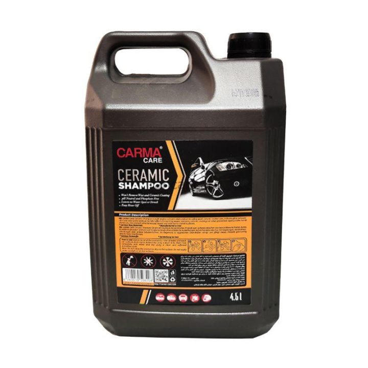 شامپو مخصوص سرامیک خودرو کارماکر مدل Carmacare Ceramic Shampoo محصولی کنسانتره با pH خنثی می باشد که برای شستشوی ایمن خودروها به ویژه خودروهای با پوشش سرامیکی مورد استفاده قرار می گیرد. این محصول با وجود کارایی بالا در حذف گرد و غبار و انواع آلودگی های جاده، به دلیل داشتن pH خنثی و فرمولاسیون ملایم هیچ گونه آسیبی به واکس رنگ خودرو ، سرامیک بدنه خودرو و سایر لایه های محافظ موجود بر روی سطح خودرو نمی رساند.