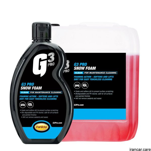 شامپو فوم کارواش فارکلا G3 PRO دارای PH خنثی است و بدون آسیب رساندن به رنگ بدنه تمام آلودگیها را از بین ببرد. بیشتر شامپوهای فوم روی لایهی پوشاننده و محافظت کننده سطح (واکس) تاثیر گذاشته و با ایجاد لایهای نازک روی این بخش اثر محافظت کننده و خود تمیز کنندگی سطح را تخریب میکند اما شامپو فوم کارواش فارکلا G3 PRO برای رنگ بدنه و حتی آلومینیم پولیش شده بیخطر بوده و پس از شست و شو هیچ لک و باقی ماندهای روی سطح ندارد. لذا این شامپو نه تنها برای وسایل نقلیه دارای پوشش (واکس) مناسب است، بلکه برای سطوح بدون واکس و حتی پولیش شده نیز مناسب میباشد.