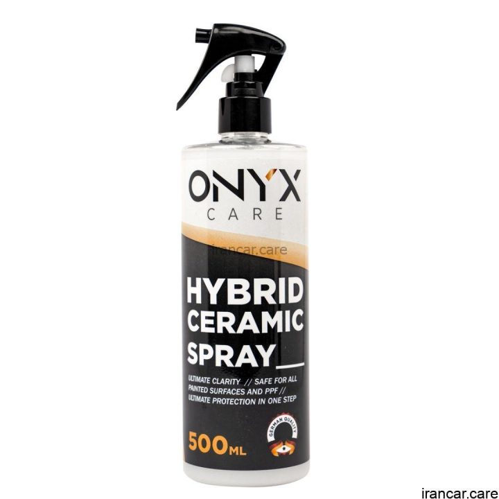 اسپری نانو سرامیک خودرو هیبریدی اونیکس HYBRID CERAMIC SPRAY بر خلاف هر اسپری سرامیکی در دنیای دیتیلینگ است. به لطف فناوری نانو سرامیک و قدرت فناوری پلیمر Onyx Coating به دفع آب، حشرات و کثیفی کمک می کند. اسپری نانو سرامیک خودرو هیبریدی اونیکس HYBRID CERAMIC SPRAY ما یک روکش آینه ای براق و یک روکش بدون رگ به جا می گذارد.