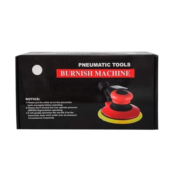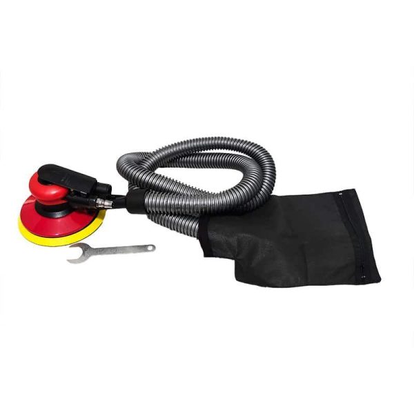 دستگاه سنباده زن اوربیتال بادی وکیوم دار 150 میلیمتری مدل Pneumatic Tool Burnish Machine همزان با حرکت چرخشی حرکت لرزشی نیز انجام می دهد و کار سنباده زنی را به عالی ترین حالت ممکن انجام می دهد. با توجه به وزن تقریبی 830 گرم و ابعاد کوچک این دستگاه، کار با آن بسیار آسان بوده و تنها با یک دست می توان عمل سنباده زنی را انجام داد. این سنباده دارای دیمر کنترل سرعت می باشد که در شرایط خاص کاربر بتواند مقدار دور سنباده را تا مقدار مورد نظر کم و زیاد بکند. اقلام همراه این سنباده: شلنگ خرطومی، کیسه پارچه ای و آچار می باشد. گرد و غبار تولید شده از سطوح پرداخت زده شده توسط خرطومی در کیسه پارچه ای جمع می شود.