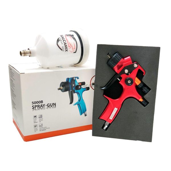 پیستوله رنگ حرفه ای سالکامیکس Salcamix مدل 5000B ساخته شده با فناوری HVLP (فشار کم حجم بالا) که به طور قابل توجهی از دست دادن مواد در هنگام رنگ آمیزی را در مقایسه با تفنگ های HP کاهش می دهد.