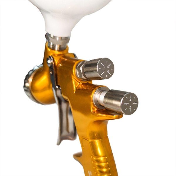 پیستوله حرفه ای 3 تنظیم سالکامیکس Salcamix مدل TTS نوع HVLP با مخزن پلاستیکی بالایی 600 میلی لیتر، قطر نازل 1.3 میلی متر. نوع HVLP – جریان هوای بالا و فشار خروجی کم برای اعمال نازک ترین لایه های رنگ مناسب است و تا 30 درصد در رنگ صرفه جویی می کند. پیستوله حرفه ای 3 تنظیم سالکامیکس Salcamix مدل TTS تخصصی برای رنگ آمیزی اتومبیل; برای اتمام کار نقاشی استفاده می شود.