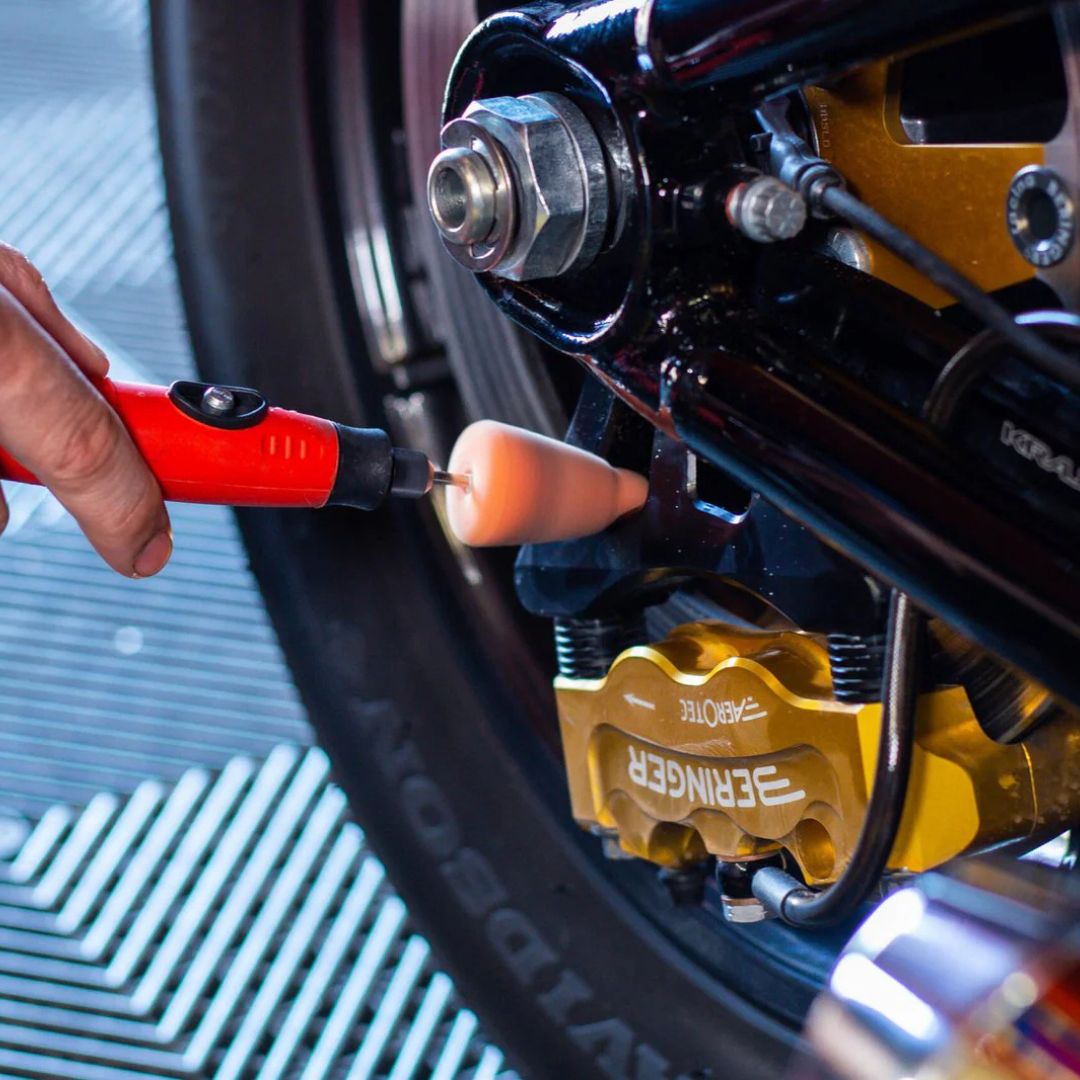 اگر قبلا دستگاه پولیش روتاری یا فرز خود را خریداری نموده اید کیت دستگاه پولیش انگشتی و مینیاتوری مینیاتوری انگشتی مدل SRS Mini Rotary Polishing System که شامل 22 تیکه جداگانه می باشد بهترین ابزار برای انجام دیتیلینگ حرفه ای و دسترسی به نقاطی مانند زیر دستگیره درها، آرم خودرو، کنار پنجره ها، زه ها، پنل داخلی کنسول خودرو، چراغ مه شکن و سایر قسمت های غیر قابل دسترس می باشد که با دستگاه پولیش نمی توانید آن قسمت ها را پولیش کنید. مکانیزم استفاده شده در قسمت انتهای این کیت مینیاتوری کار را برای جدا سازی و اجرا بسیار ساده ساخته است.